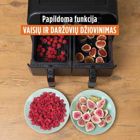 - Papildomas privalumas? Gruzdintuvėje taip pat galite džiovinti vaisius ir daržoves. Jūsų užkandžiai bus dar įvairesni.