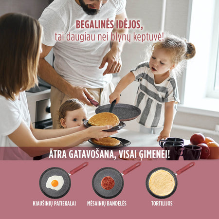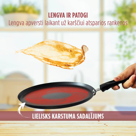 - Taip pat puikiai tinka omletams, mėsainiams, tortilijoms kepti ir dar lengviau apversti blynus.