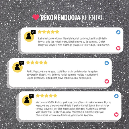 - Tobulų blynų ar omletų receptas? Viskas, ko jums reikia, tai kokybiškos Grape keptuvės su ergonomiška rankena, kad būtų lengva apversti, ir nelimpančia danga, kuri tolygiai iškepa blynus.