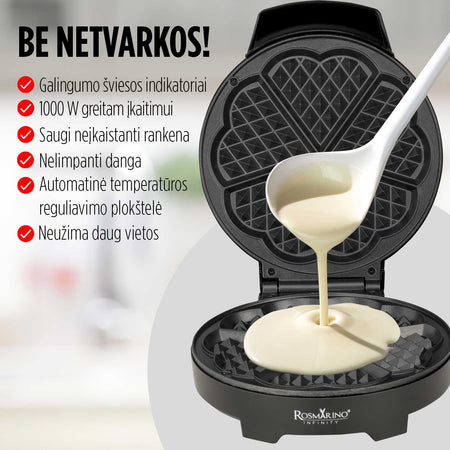 - Keptuvė idealiai traškiems ir minkštiems širdelės formos vafliams gaminti.