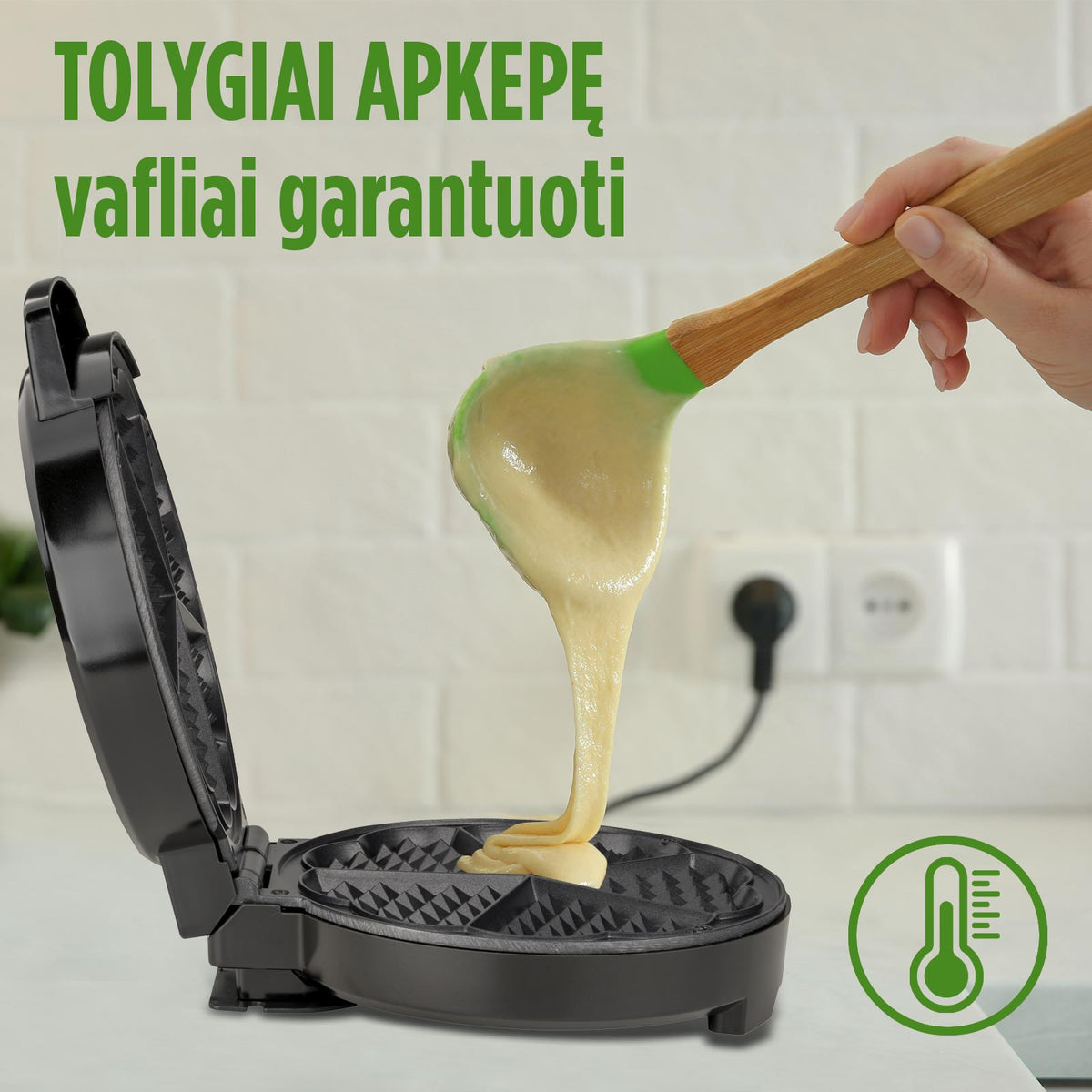 - Sveikas vaflių kepimas be papildomo sviesto, aliejaus ar kitų riebalų.