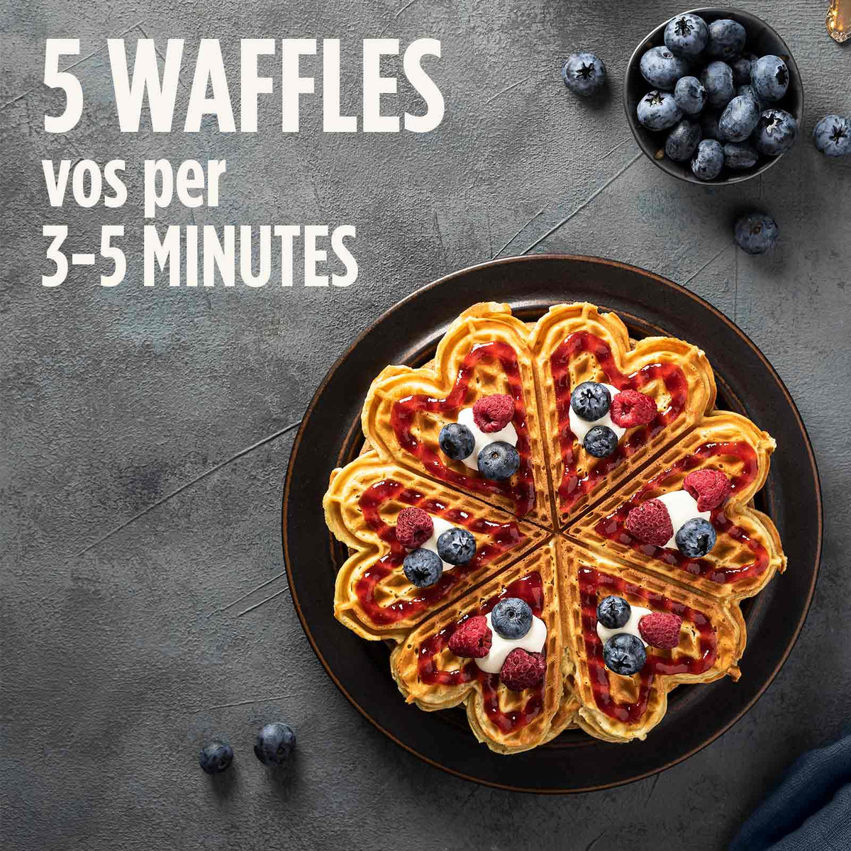 Vienu metu galite iškepti iki 5 vaflių. Akimirksnis, greitas rezultatas ir skonių sprogimas.
