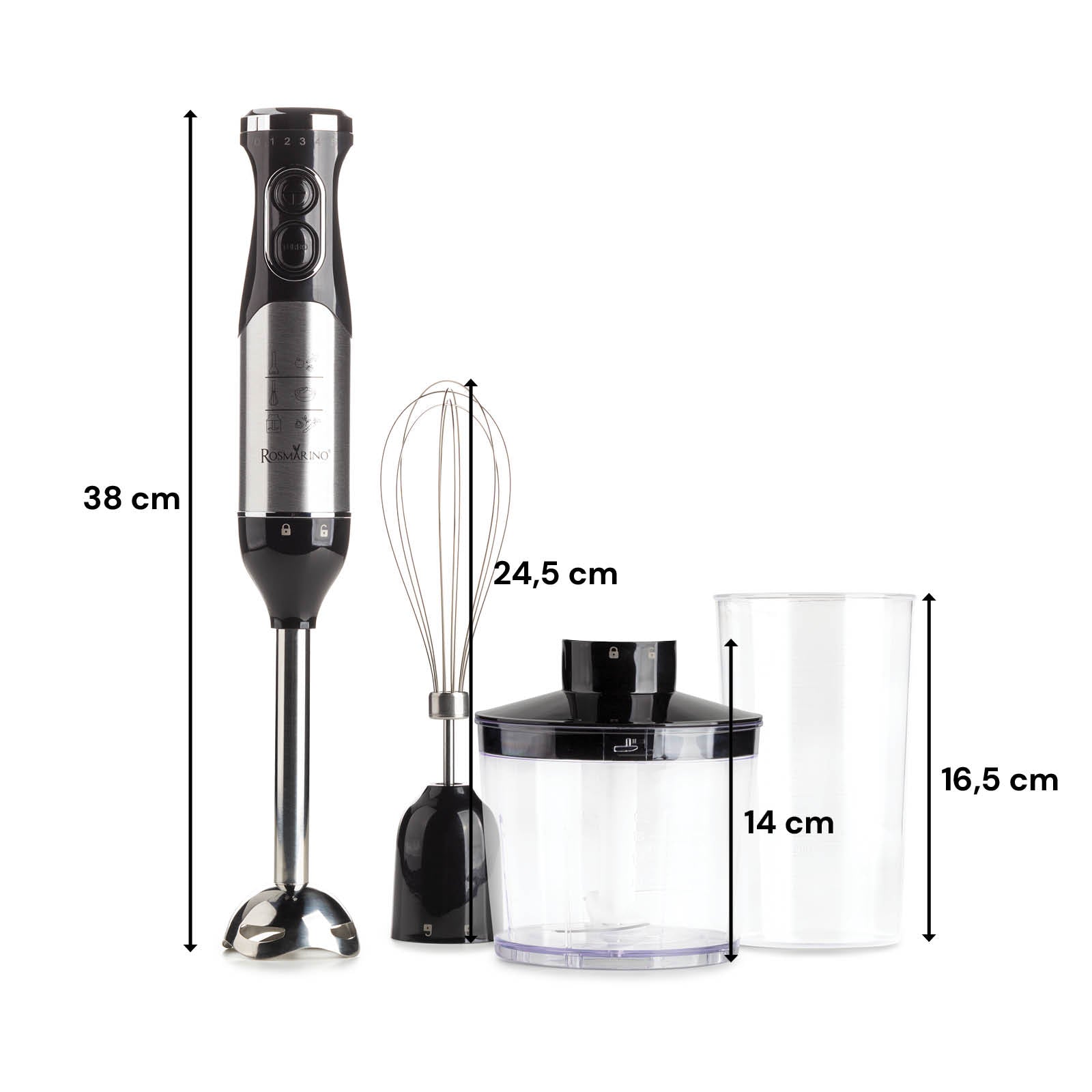 Rosmarino Vitalia PRO trintuvas yra viskas, ko reikia net profesionaliam maisto gaminimui. 3-viename: vienu prietaisu galite maišyti, plakti arba smulkinti. Pridedami priedai dar labiau palengvina virtuvės darbus. 5 greičiai + turbo funkcija leidžia išgauti skirtingą patiekalų tekstūrą.