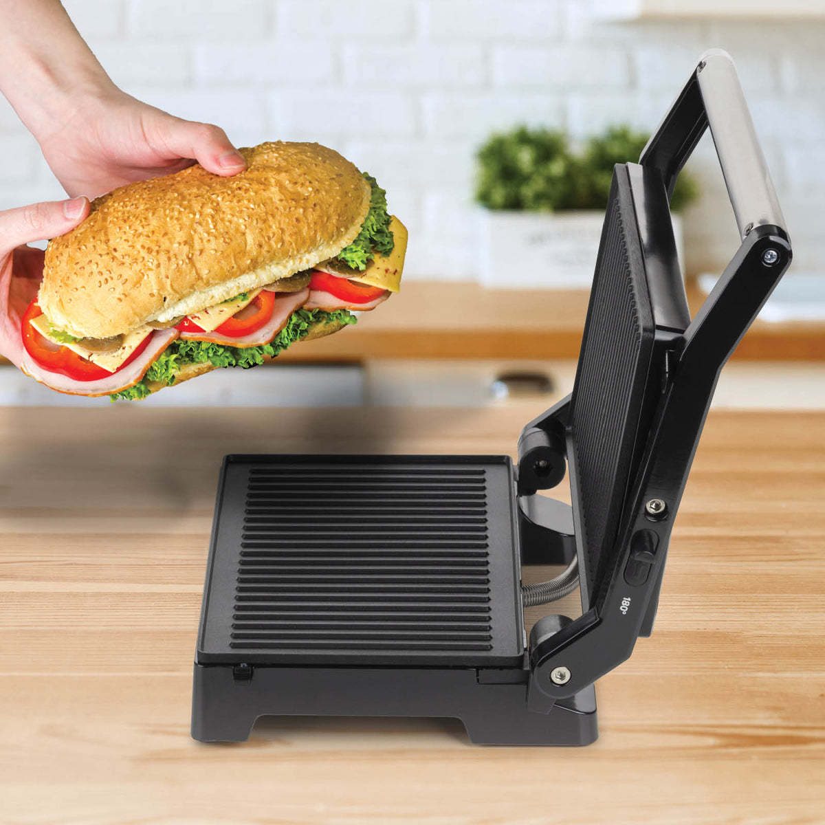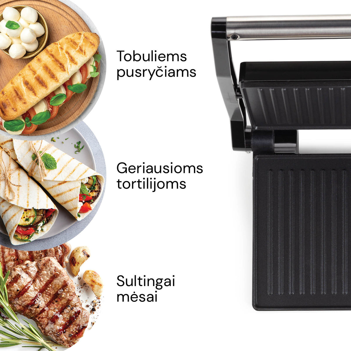 Pasiruošę greitiems patiekalams? Išsikepkite sumuštinį, kiaušinį ar skrebučius. Tiesiog įjunkite, kepkite ir valgykite. Šis nedidelis sumuštinių keptuvas taip pat stebina tuo, kaip puikiai apkepa daržoves ar porą čevapčiči.