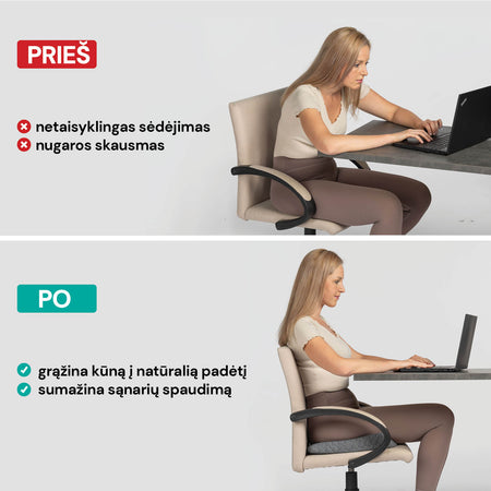 - Pagerina laikyseną ir apsaugo nuo susilenkimo sėdint.