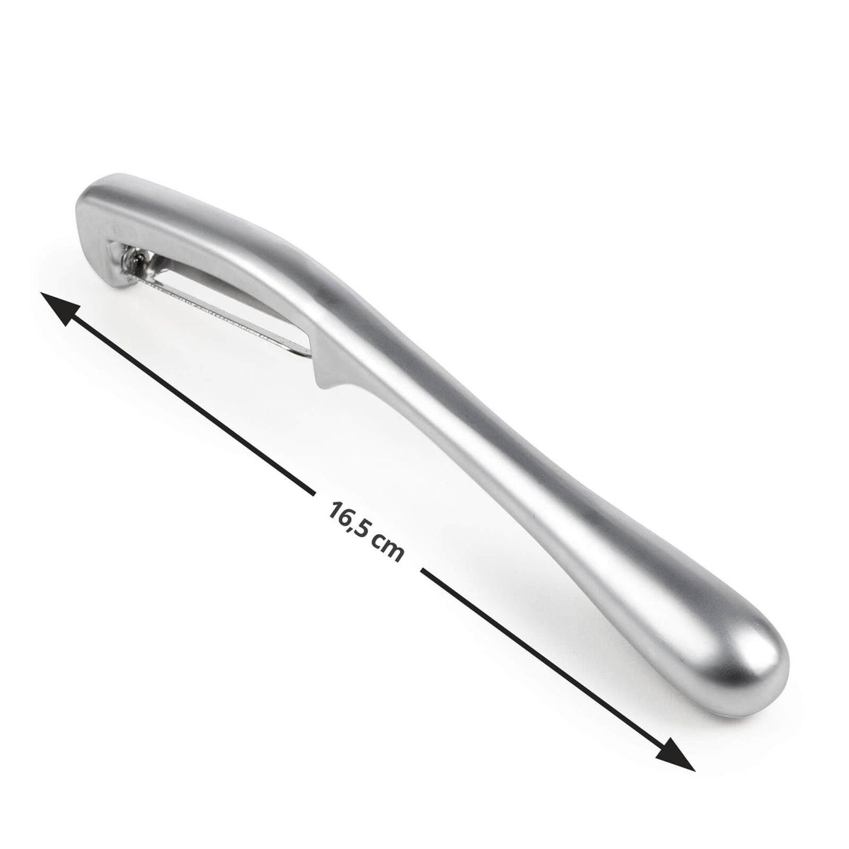 Galingas ir patvarus skustuvas skirtas universaliam naudojimui. Dėl siauros formos galite lengvai nulupti mažesnius vaisių ir daržovių gabalėlius. Puikiai tinka obuoliams, kriaušėms, kiviams, morkoms, cukinijoms, agurkams ir bulvės lupti. Pagaminta tik iš nerūdijančio plieno su silikoniniu pamušalu ant rankenos, kad peilis neslystų ir geriau sukibtų. Baigę naudoti, tiesiog nuplaukite po tekančiu vandeniu arba įdėkite į indaplovę.