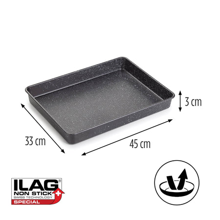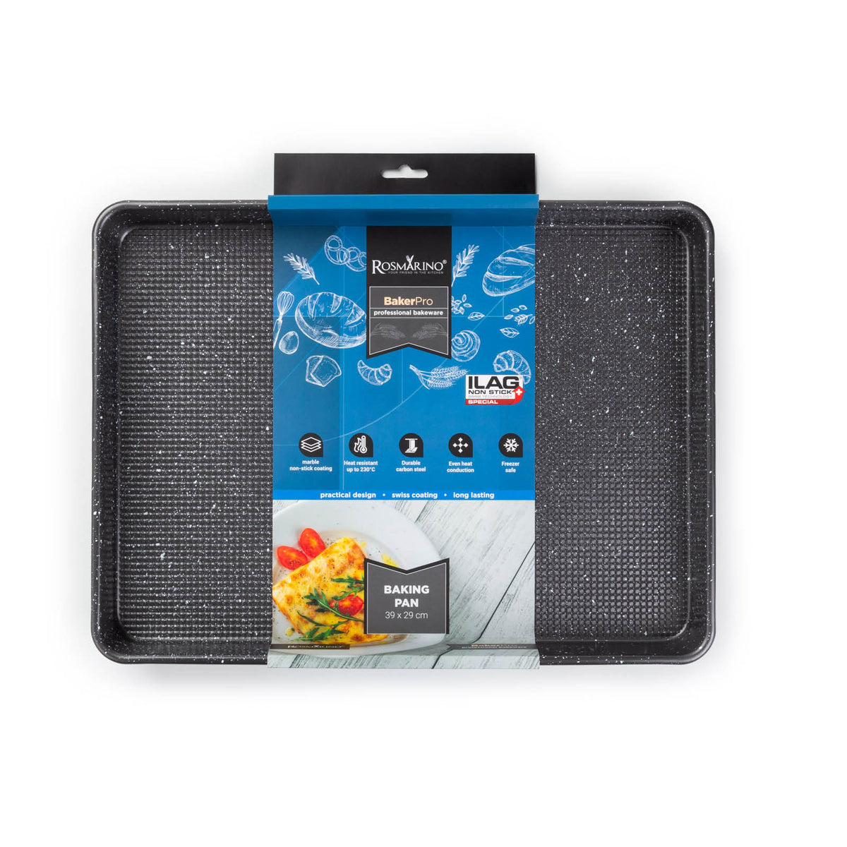 Aukštesnė stačiakampė „Rosmarino BakerPRO“ kepimo forma yra viskas, ko reikia tobulam valgiui paruošti. Marmurinės išvaizdos keptuvė su ILAG šveicariška nepridegančia danga ir rumbuotu dugnu, leidžiančiu tolygiai paskirstyti šilumą ir kepti su minimaliu riebalų kiekiu, nes maistas neprilimpa prie keptuvės. Dėl anglinio plieno sudėties keptuvė taip pat atspari aukštai temperatūrai, iki 230°C; tinkama laikyti šaldytuve ir šaldiklyje. Patvarus ir patikimas dizainas profesionaliems kepimo rezultatams.