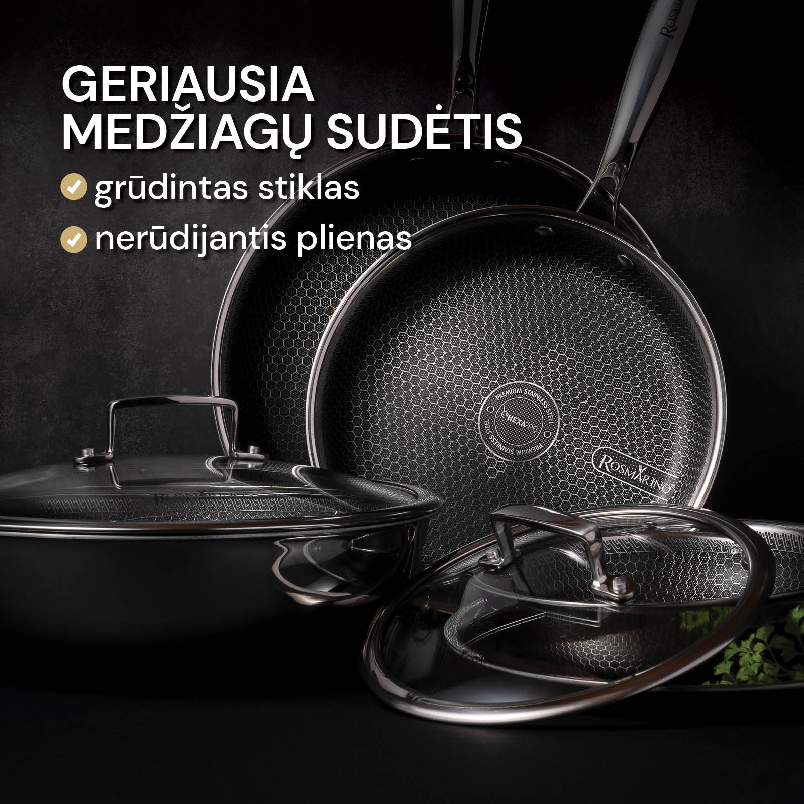 Rosmarino HexaPRO dangtis puikiai pasitarnaus įvairiuose virtuvės procesuose. Naudokite jį gamindami ant viryklės, orkaitėje iki 220 °C arba laikydami patiekalus šaldytuve.