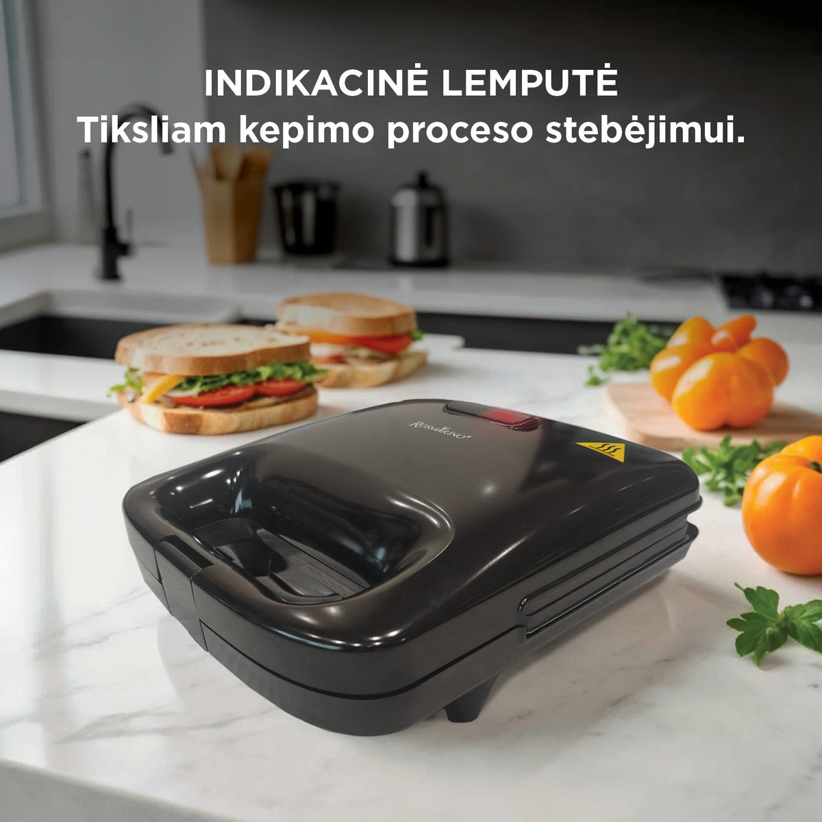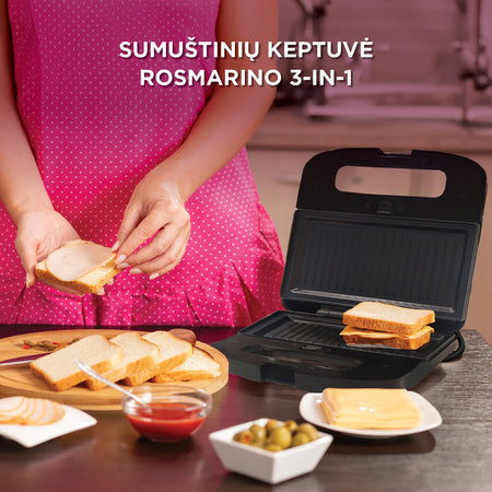 Nebereikia laukti, kol įkais keli skirtingi prietaisai. Kai norite šilto patiekalo, tiesiog įjunkite Rosmarino sumuštinių keptuvę – pirmoji porcija bus paruošta vos per 2–3 minutes. Puikiai tinka greitam gyvenimo tempui ir netikėtiems svečiams..