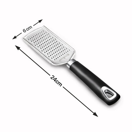 Rosmarino Classic dvikryptis pjaustytuvas sukurtas taip, kad būtų galima be vargo braukti skirtingus ingredientus abiem kryptimis! Peiliai pagaminti iš aukštos kokybės nerūdijančio plieno ir savo išskirtiniu aštrumu leidžia itin tiksliai ir tolygiai skusti morkas, cukinijas, svogūnus ir kitus ingredientus. Patogi rankena su neslystančiu kraštu apatinėje pusėje užtikrina lengvą sukibimą, o papildoma anga rankenoje – patogiau laikyti. Lengva valyti po tekančiu vandeniu arba plauti indaplovėje. Gaminimas su Rosmarino Classic įrankiais bus profesionalus ir smagus tuo pačiu metu!