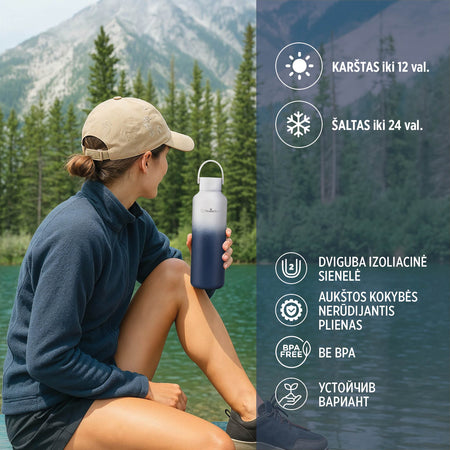 - Išlaiko idealią gėrimo temperatūrą visą dieną – karštą iki 12 valandų, šaltą iki 24 valandų.