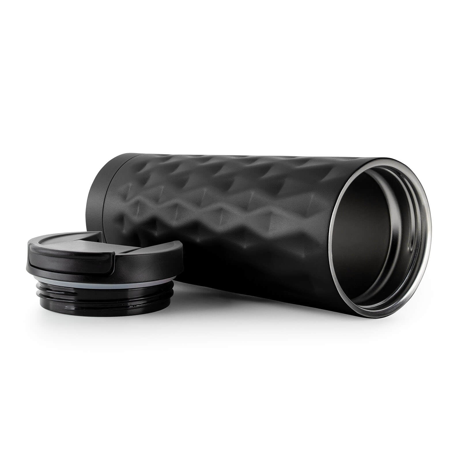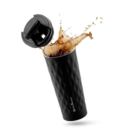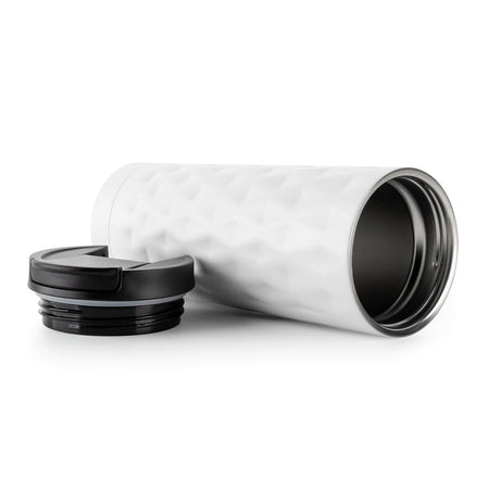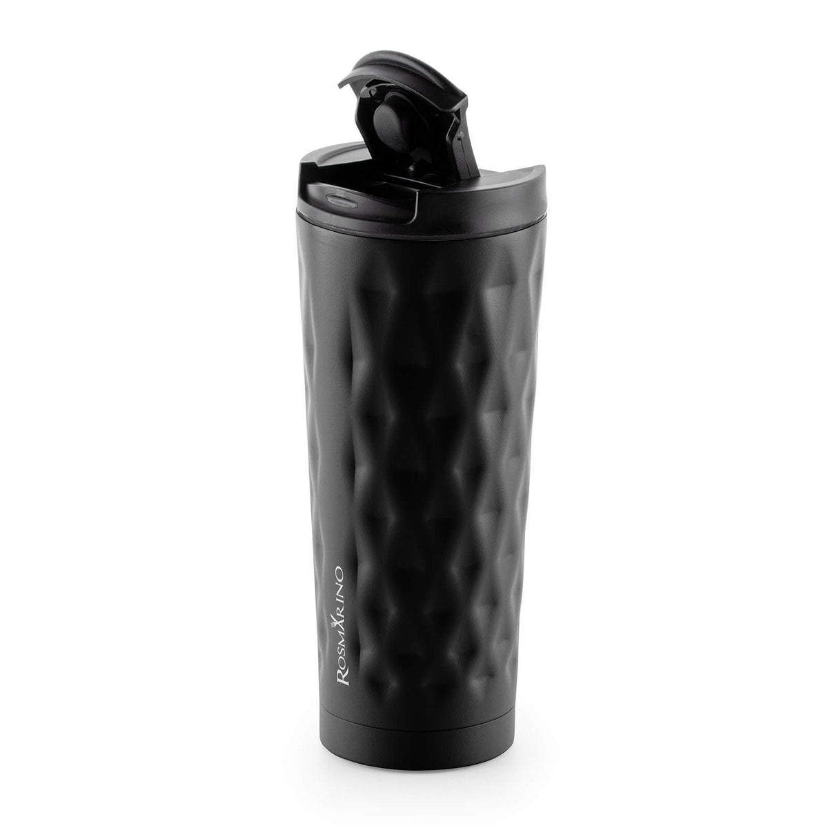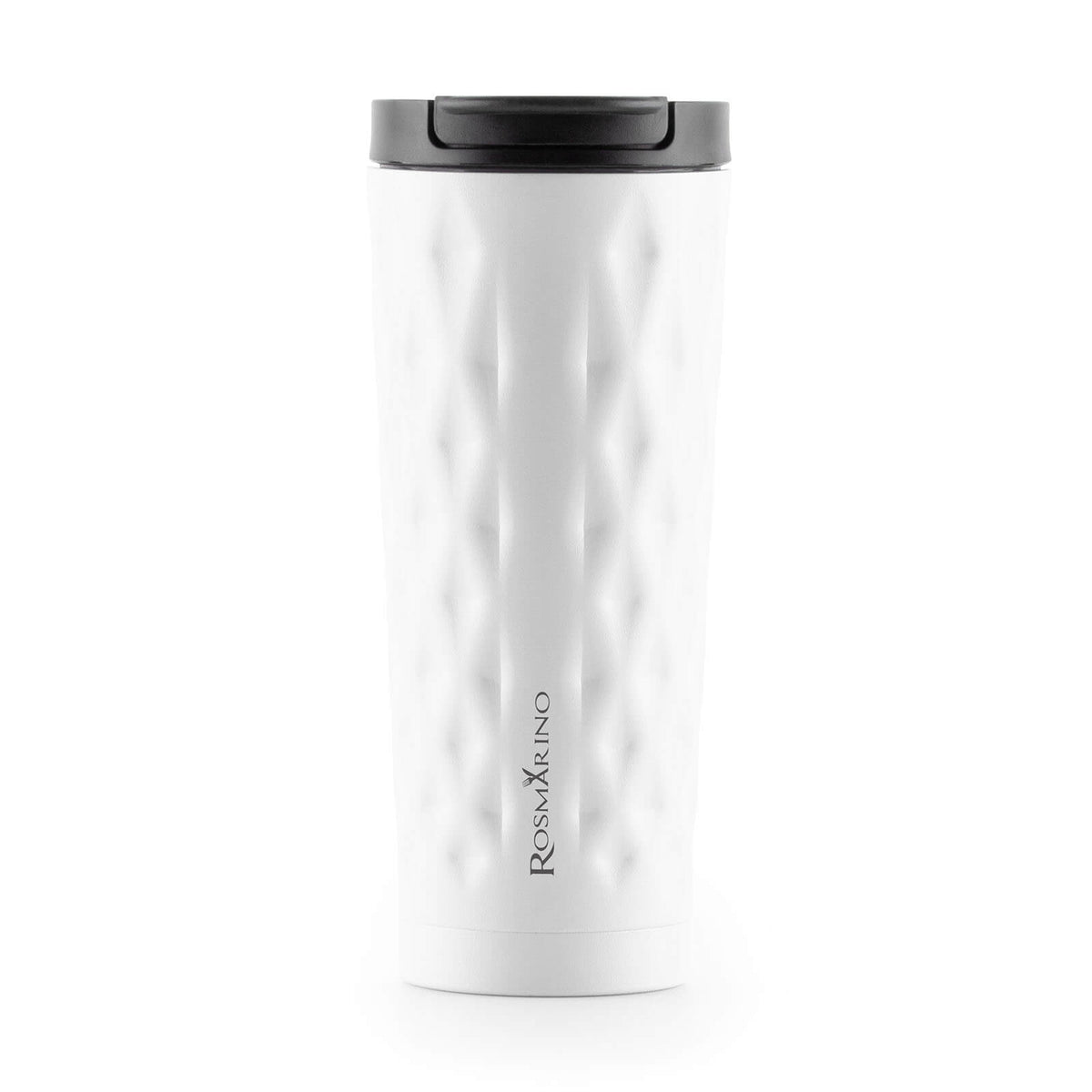 Rosmarino terminis kelioninis puodelis pagamintas iš aukštos kokybės nerūdijančio plieno su dviguba izoliacine sienele ir išlaiko skysčius šaltus iki 8 valandų, o šiltus – iki 4 valandų. Daugkartinis puodelis yra geriausia vienkartinių puodelių alternatyva, jame nėra naftos ir BPA, todėl nepaliekama dirbtinio gėrimo skonio. 500 ml puodelis yra puikaus dydžio jūsų mėgstamai kavai, arbatai ar kitam gėrimui mėgautis kelionėje. Geometrinė tekstūra suteikia moderniam dizainui stilingumo. Dangtelio dėka puodelis neišsilies ir bus 100 % nepralaidus. Tinka daugeliui automobilių puodelių laikiklių.