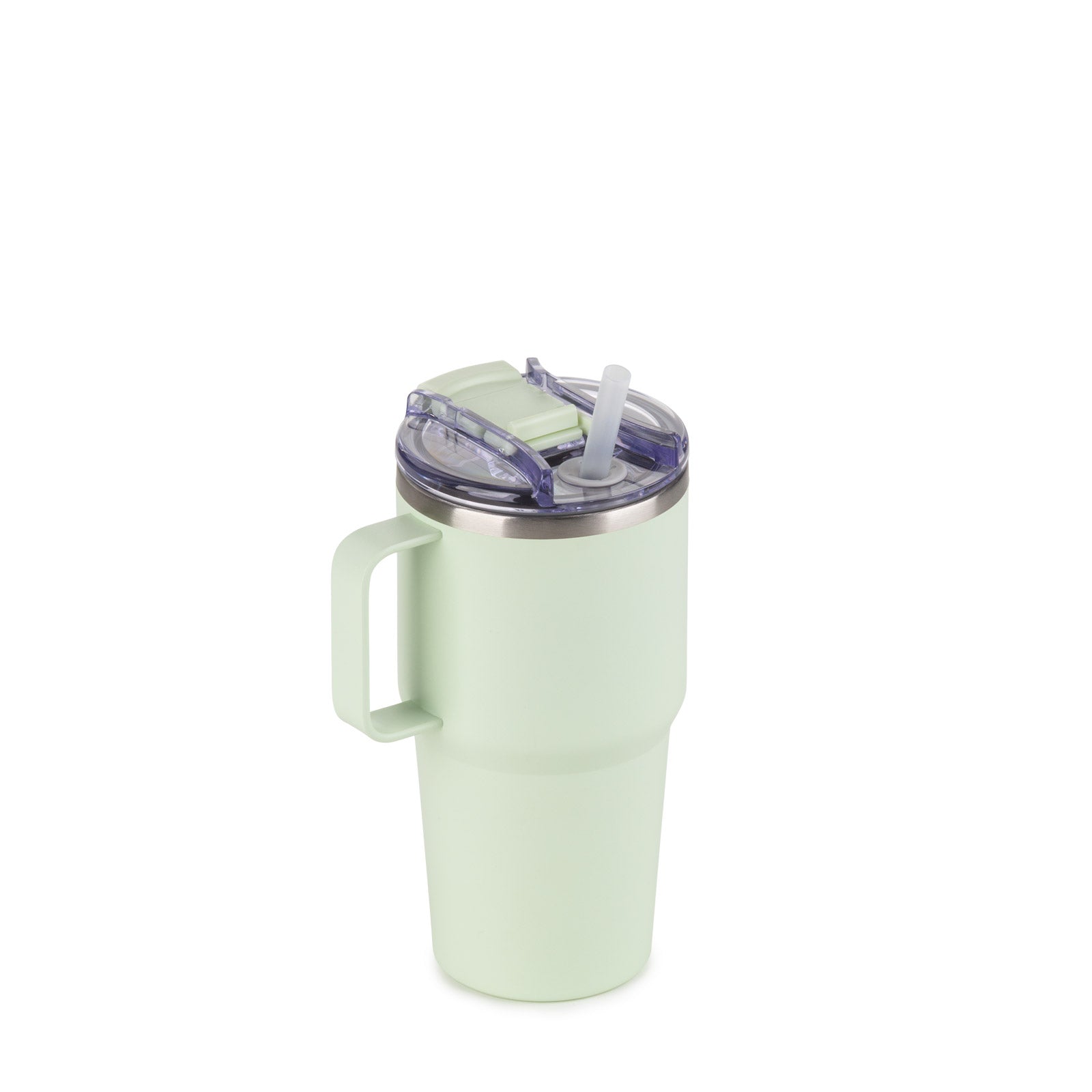 Šis madingas termo puodelis pasirūpins, kad kasdien išgertumėte pakankamai skysčių, nes nereikės jo nuolat pildyti. Dėl didelės talpos galėsite mėgautis mėgstamu gėrimu be rūpesčių. Puodelis pasižymi aptakiu dizainu, išsiskiriančiu elegancija ir stiliumi. Subtili spalva, glotnios linijos ir didelė rankena ne tik pritrauks dėmesį, bet ir susižavėjimo žvilgsnius paplūdimyje, biure, kelionėje ar sportuojant.