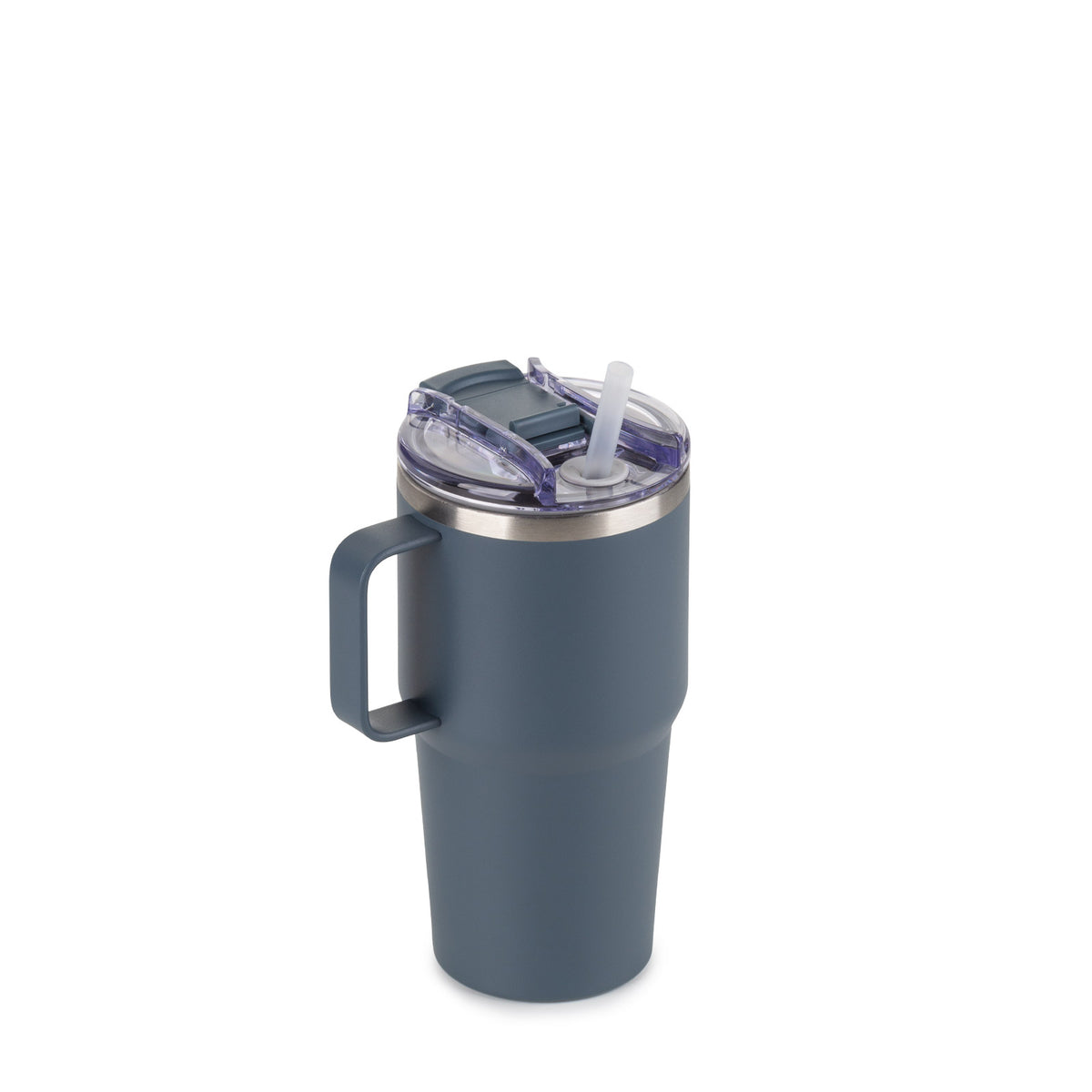 Didelė rankena tinka bet kuriai rankai, o aptakūs kraštai ir neslystantis paviršius užtikrina patogų laikymą. Tai ypač patogu keliaujant arba užsiimant veikla lauke. Puodelis taip pat turi šiek tiek smailėjantį dugną, kad lengvai tilptų į daugumą automobilių puodelių laikiklių. Išties universalus kompanionas!