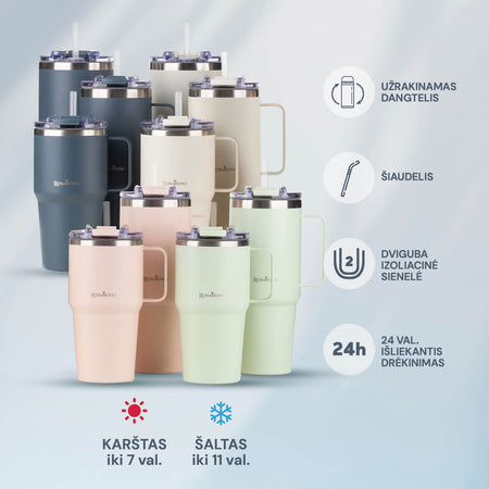 - Madingas termo puodelis, kuris išlaiko skysčius šaltus iki 11 val., o šiltus – iki 7 val.