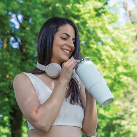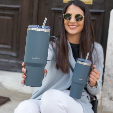 Šis madingas termo puodelis pasirūpins, kad kasdien išgertumėte pakankamai skysčių, nes nereikės jo nuolat pildyti. Dėl didelės talpos galėsite mėgautis mėgstamu gėrimu be rūpesčių. Puodelis pasižymi aptakiu dizainu, išsiskiriančiu elegancija ir stiliumi. Subtili spalva, glotnios linijos ir didelė rankena ne tik pritrauks dėmesį, bet ir susižavėjimo žvilgsnius paplūdimyje, biure, kelionėje ar sportuojant.
