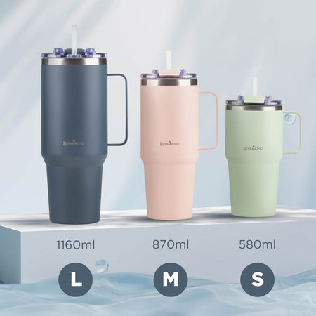 - Didelė talpa, patogus šiaudelis ir praktiška rankena, kad būtų lengva nešiotis.