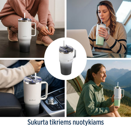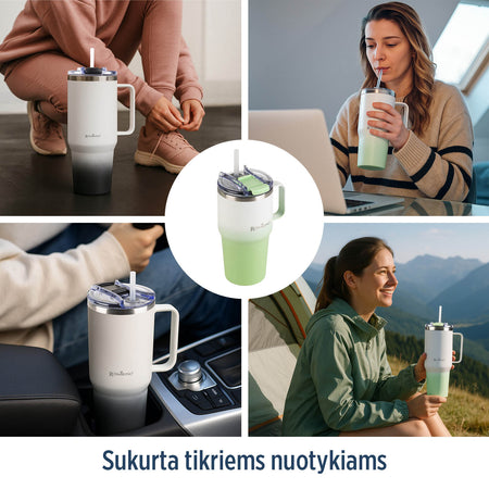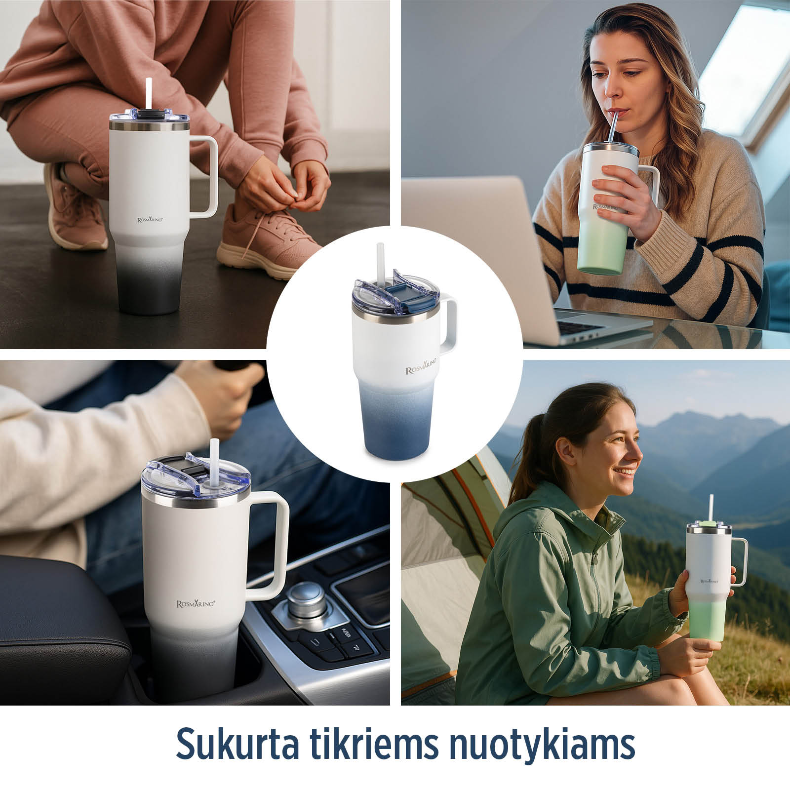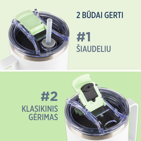 - Praktiškas dangtelis su šiaudeliu leidžia gerti be rūpesčių – kad ir kur būtumėte.