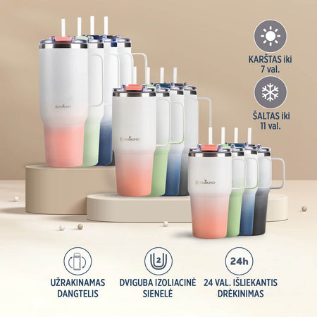 - Aukštos kokybės dvigubų sienelių izoliacija išlaiko gėrimo temperatūrą net ir po kelių valandų.