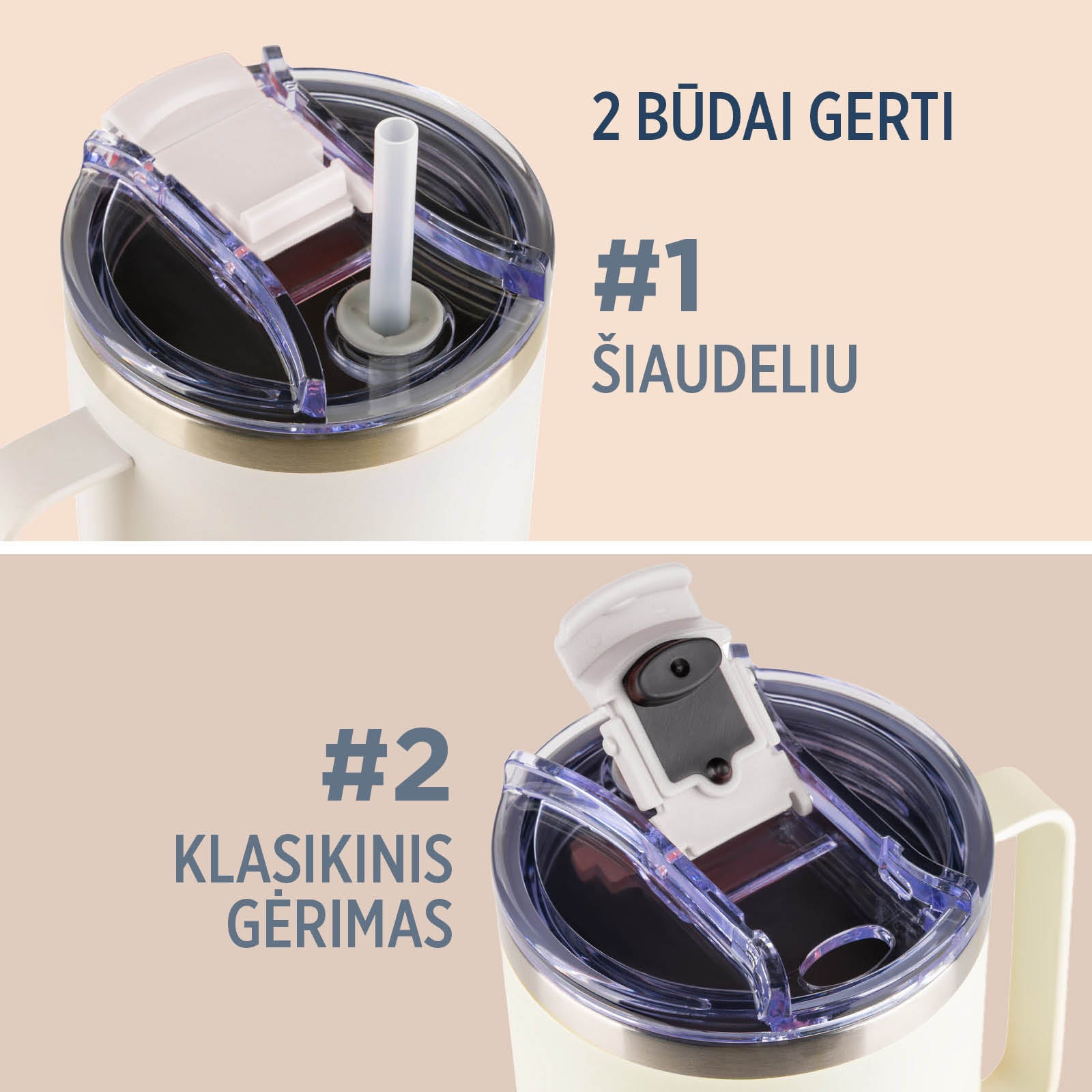 - Praktiškas dangtelis su šiaudeliu leidžia gerti be rūpesčių – kad ir kur būtumėte.