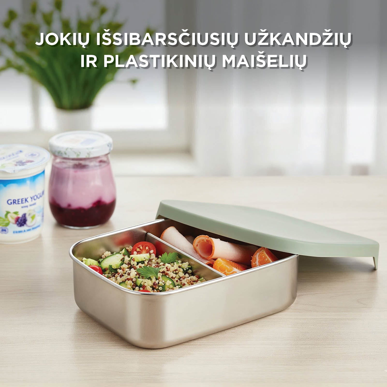 - Stebėtinai lengva, bet patvari užkandžių dėžutė, puikiai tinkanti kasdieniam naudojimui darbe, sporto salėje ar kelionėje.