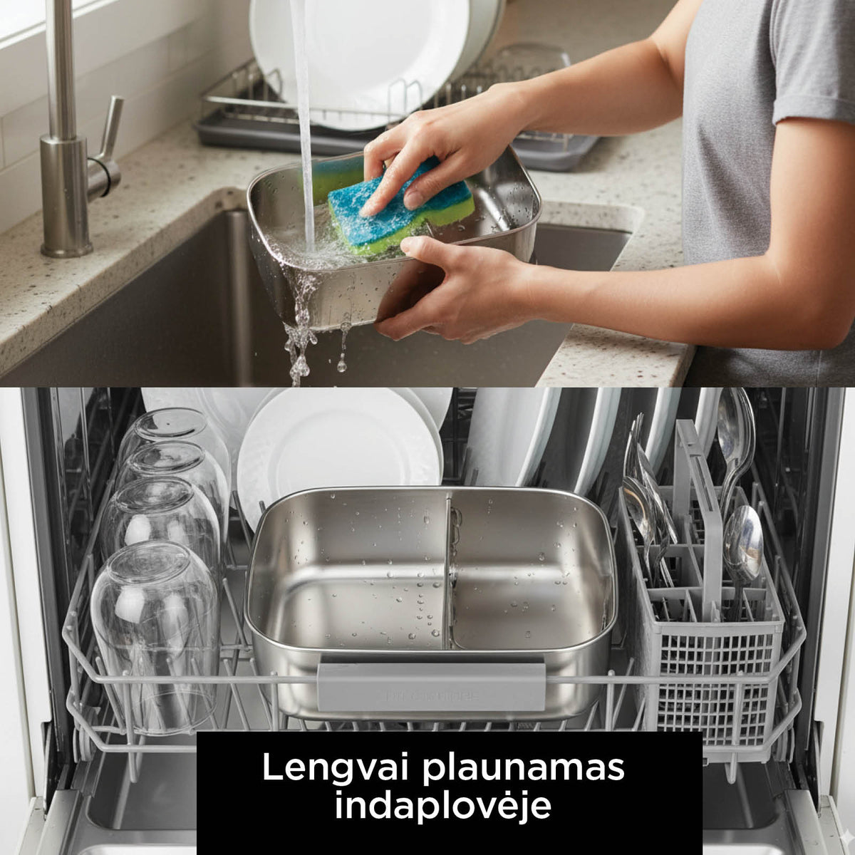 - Maistas ilgiau išlieka šviežias, nes nerūdijantis plienas palaiko optimalią temperatūrą.