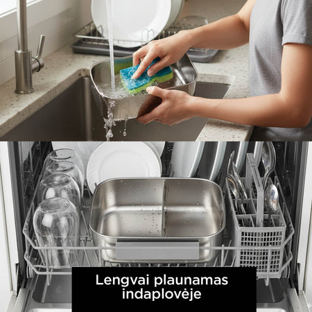 - Be šveitimo ar mirkymo – paprastai išplaunama indaplovėje.