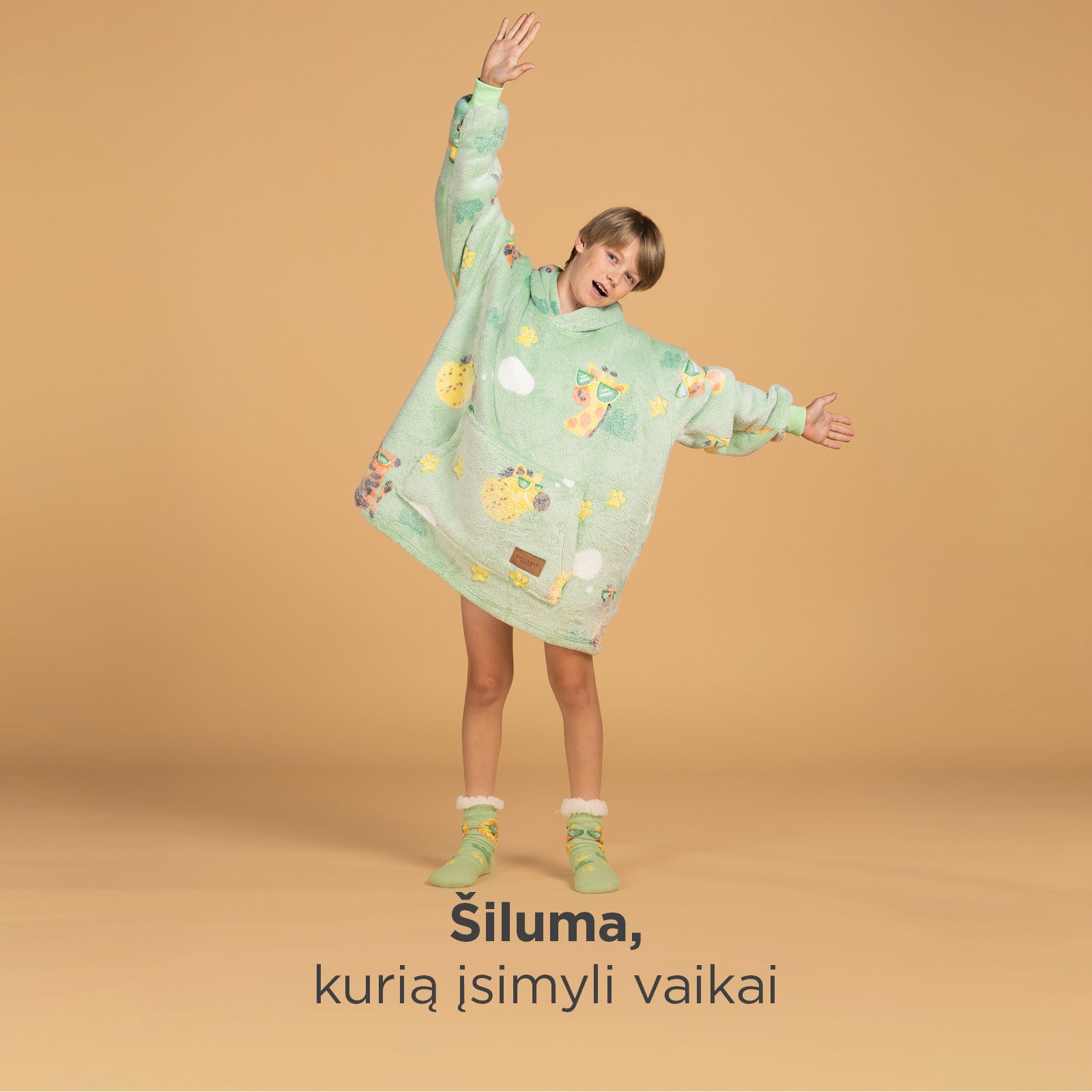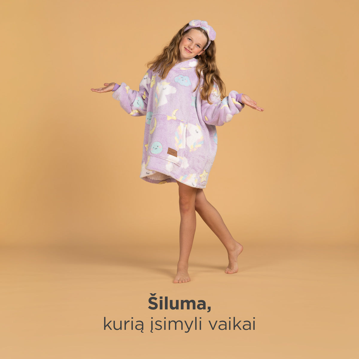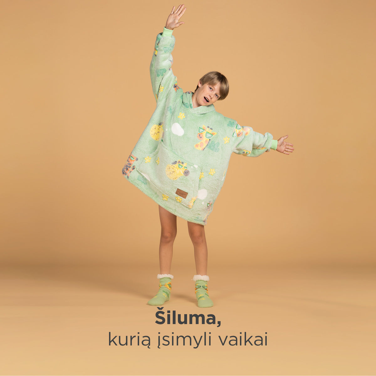 - Vaikai jaučiasi tarsi vilkėtų stebuklingą apsiaustą, kai apsivelka pūkuotą antklodę su gobtuvu.