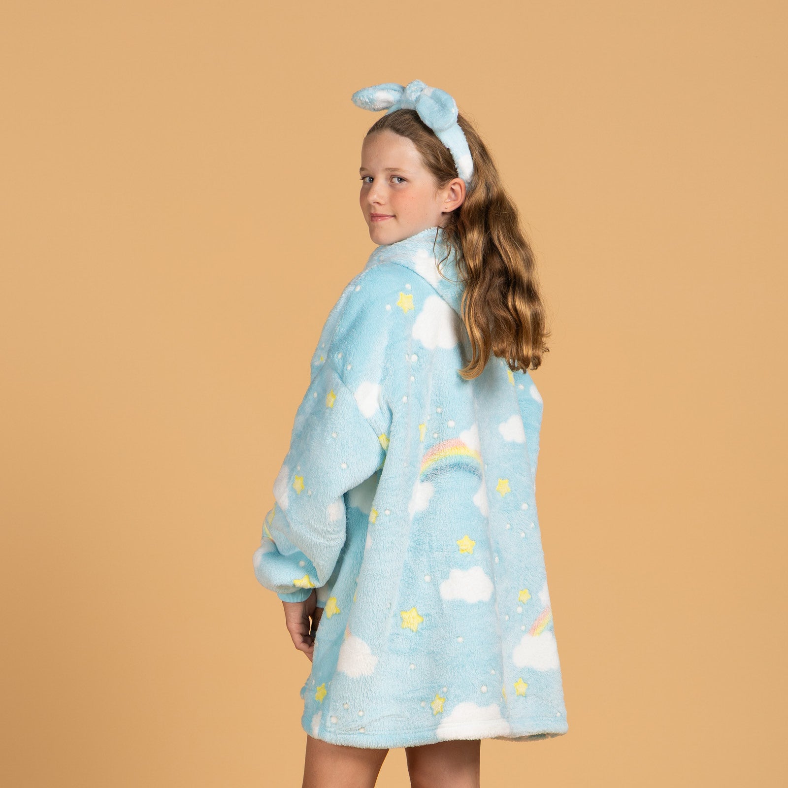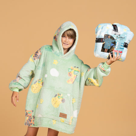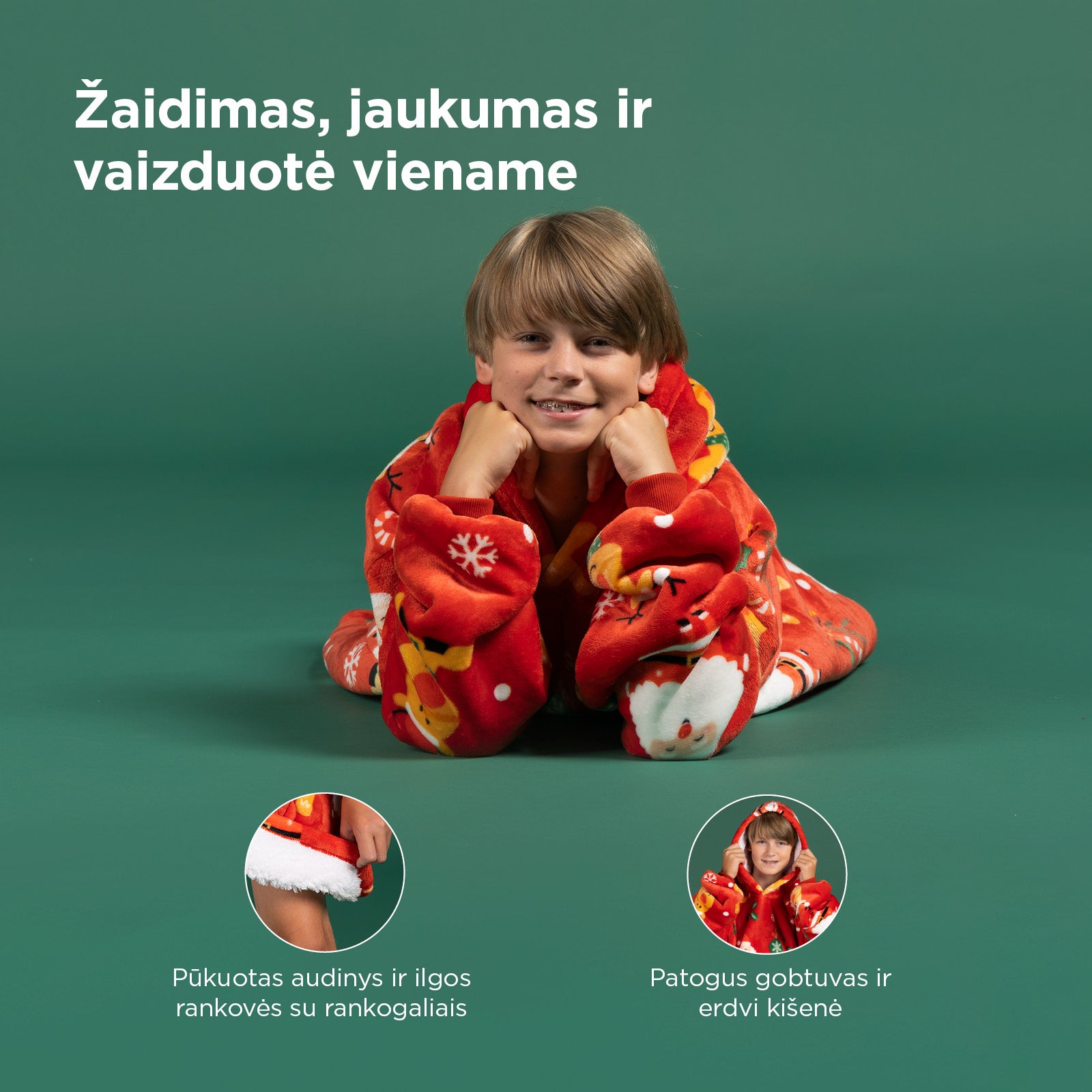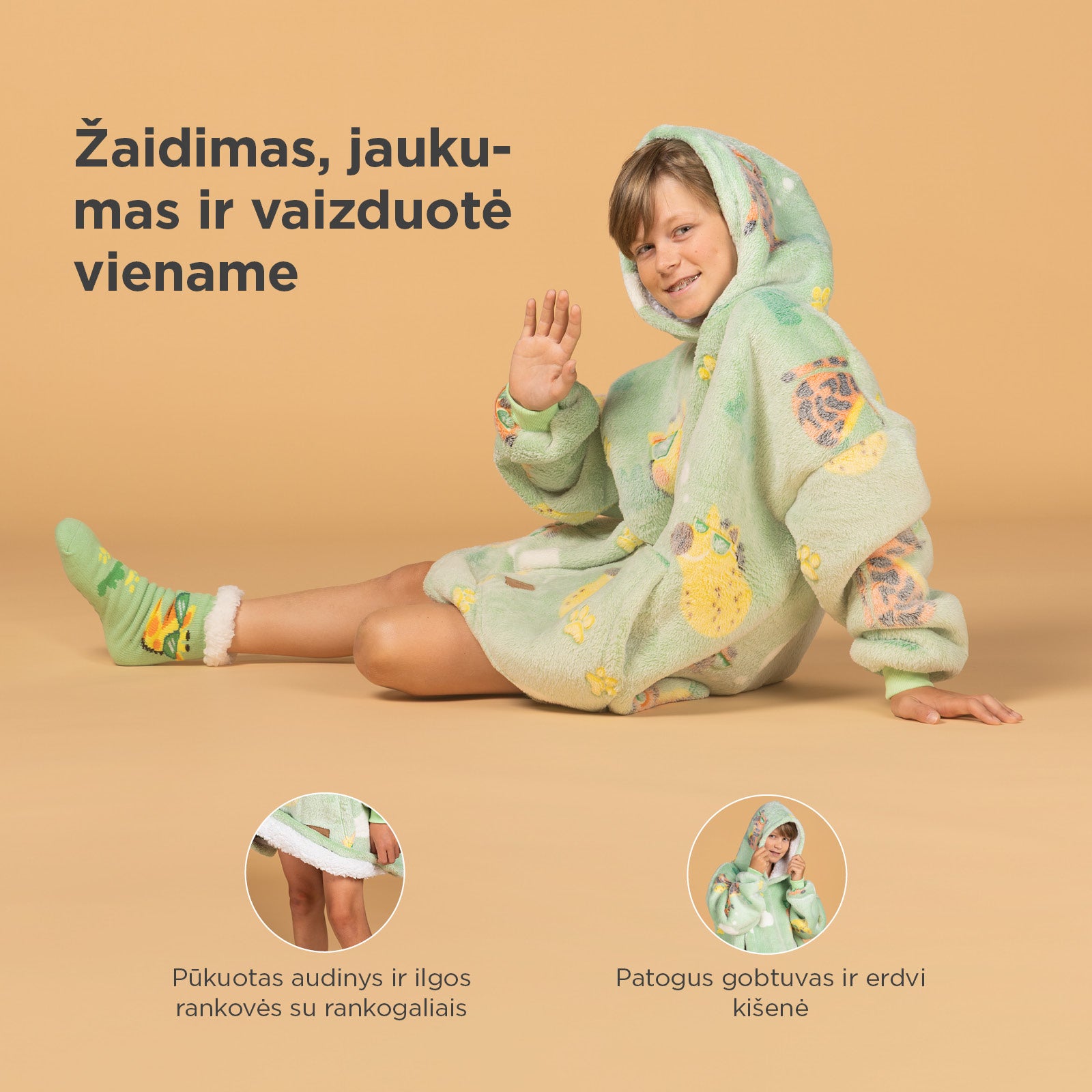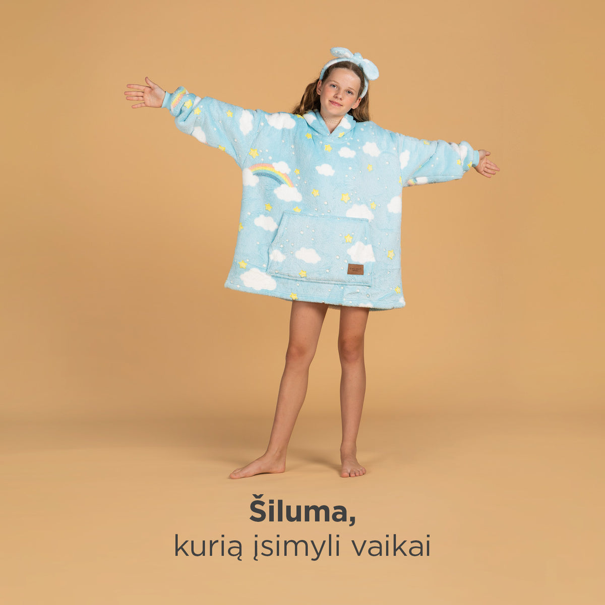 - Vaikai jaučiasi tarsi vilkėtų stebuklingą apsiaustą, kai apsivelka pūkuotą antklodę su gobtuvu.