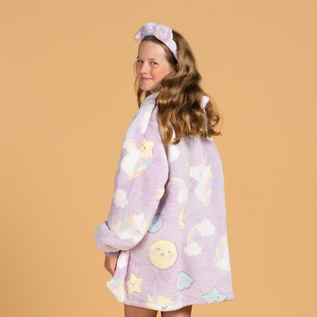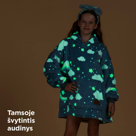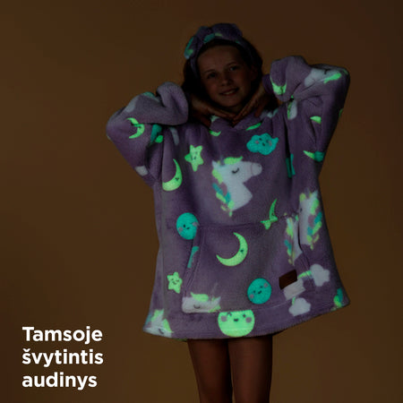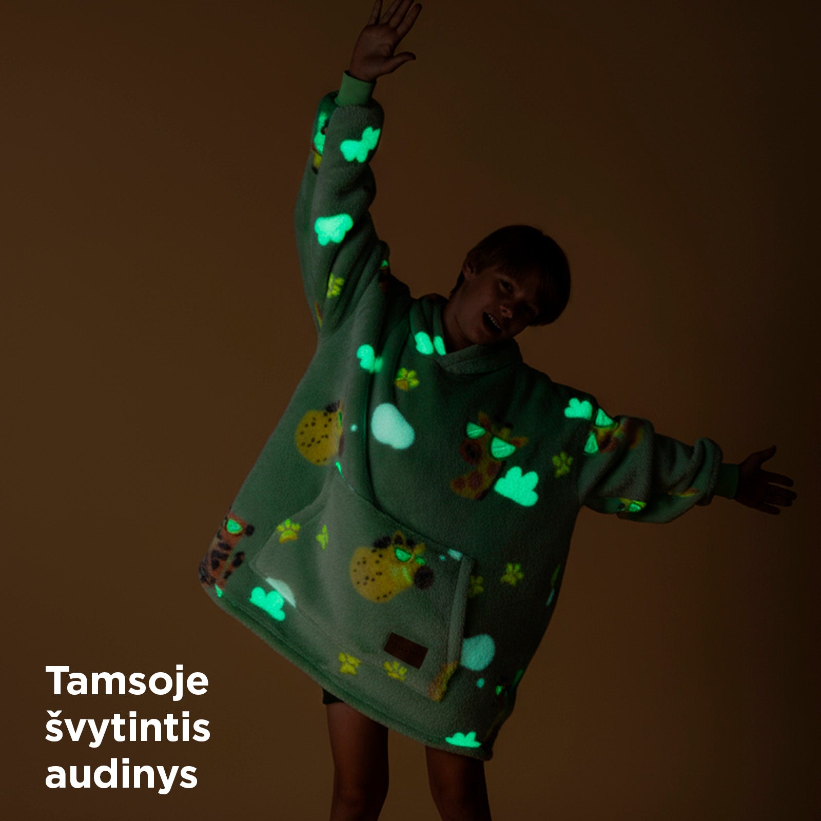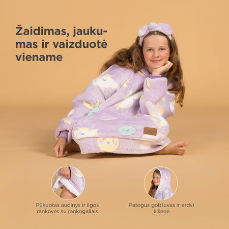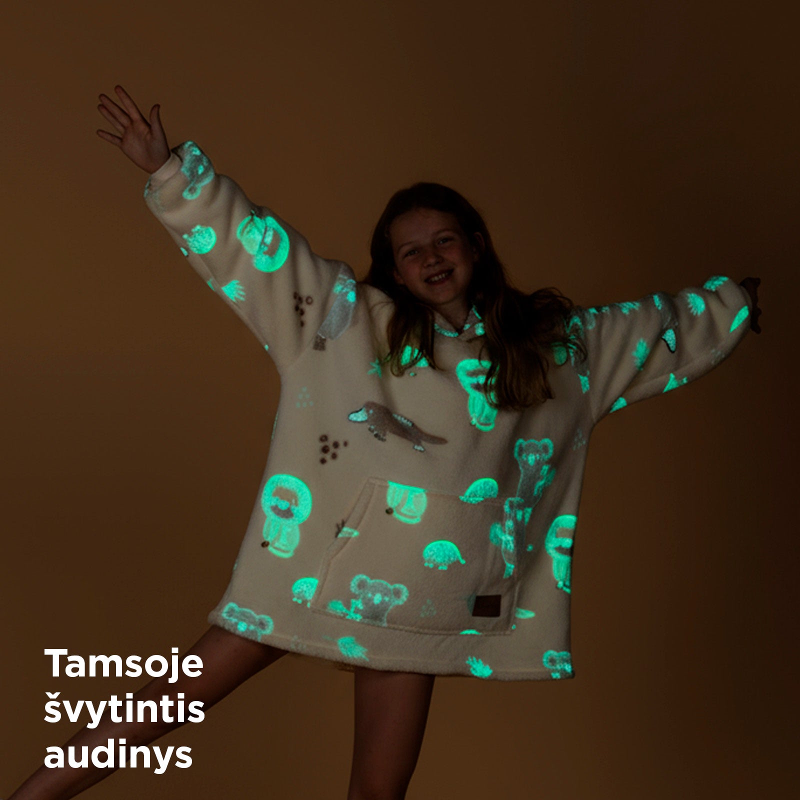 Vaikai mėgsta įsikūnyti į mažus burtininkus. Ilga antklodė su gobtuvu ir plačiomis rankovėmis primena burtininko apsiaustą, o tamsoje švytintys elementai suteikia ilgoms žiemos vakarams ypatingos magijos. Linksmi raštai skatina vaikų vaizduotę, o minkštas audinys užtikrina komfortą žaidžiant.
