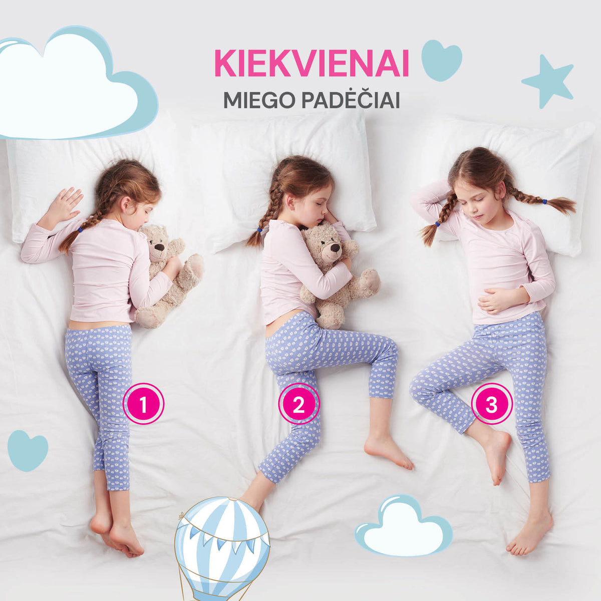 - Tinka visoms 3 metų ir vyresnių vaikų miego padėtims (ant nugaros, šono ir net pilvo).