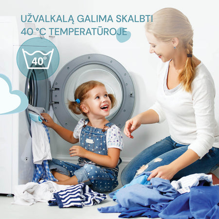 - Pagalvės užvalkalą galima skalbti 40 °C temperatūroje, todėl jis tinka vaikams, kurių oda jautri ir problemiška, kenčiantiems nuo alergijų ir astmos.