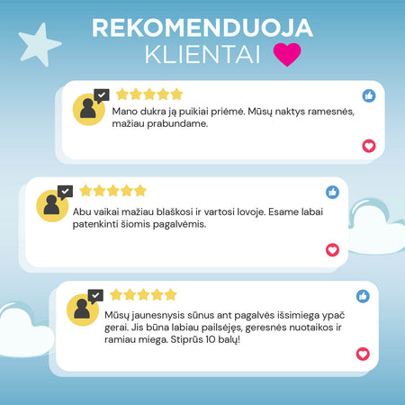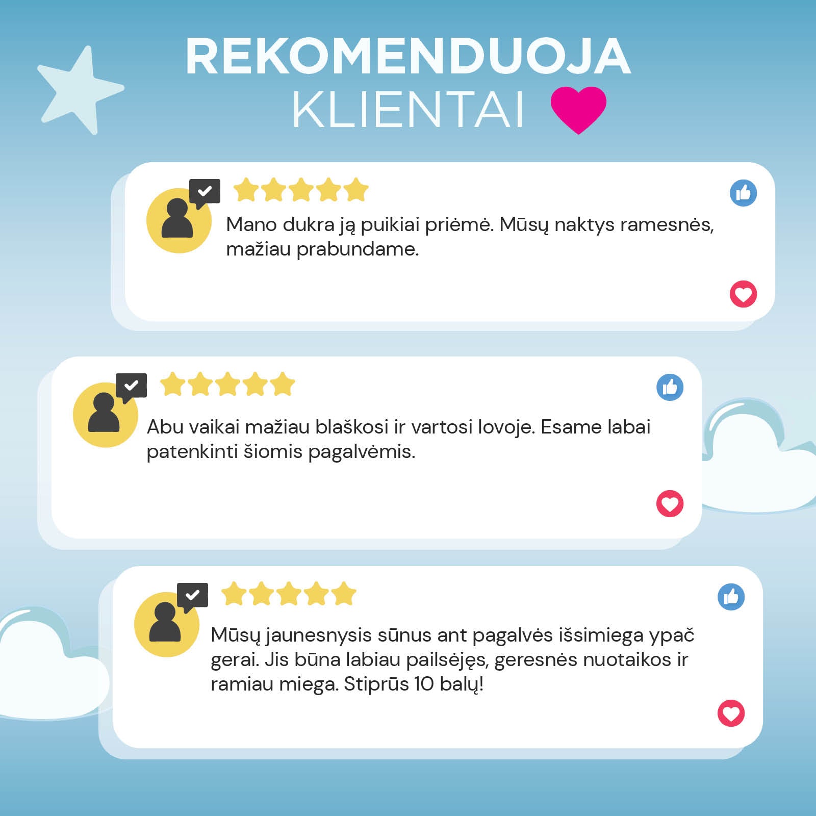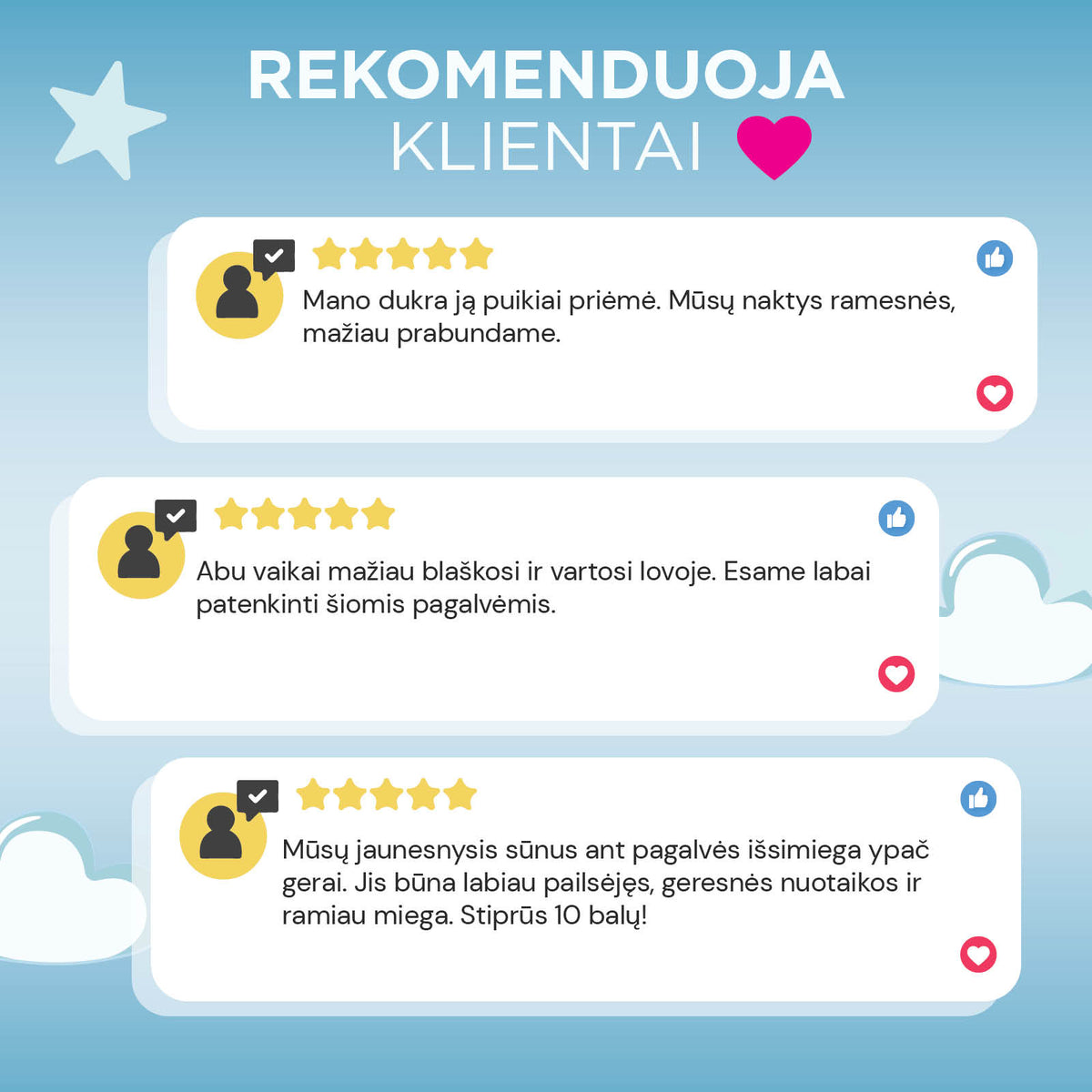 - Puikiai tinka visoms miego padėtims ir vyresniems nei 3 metų vaikams.