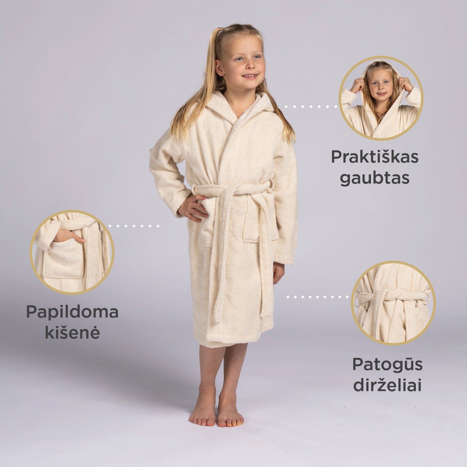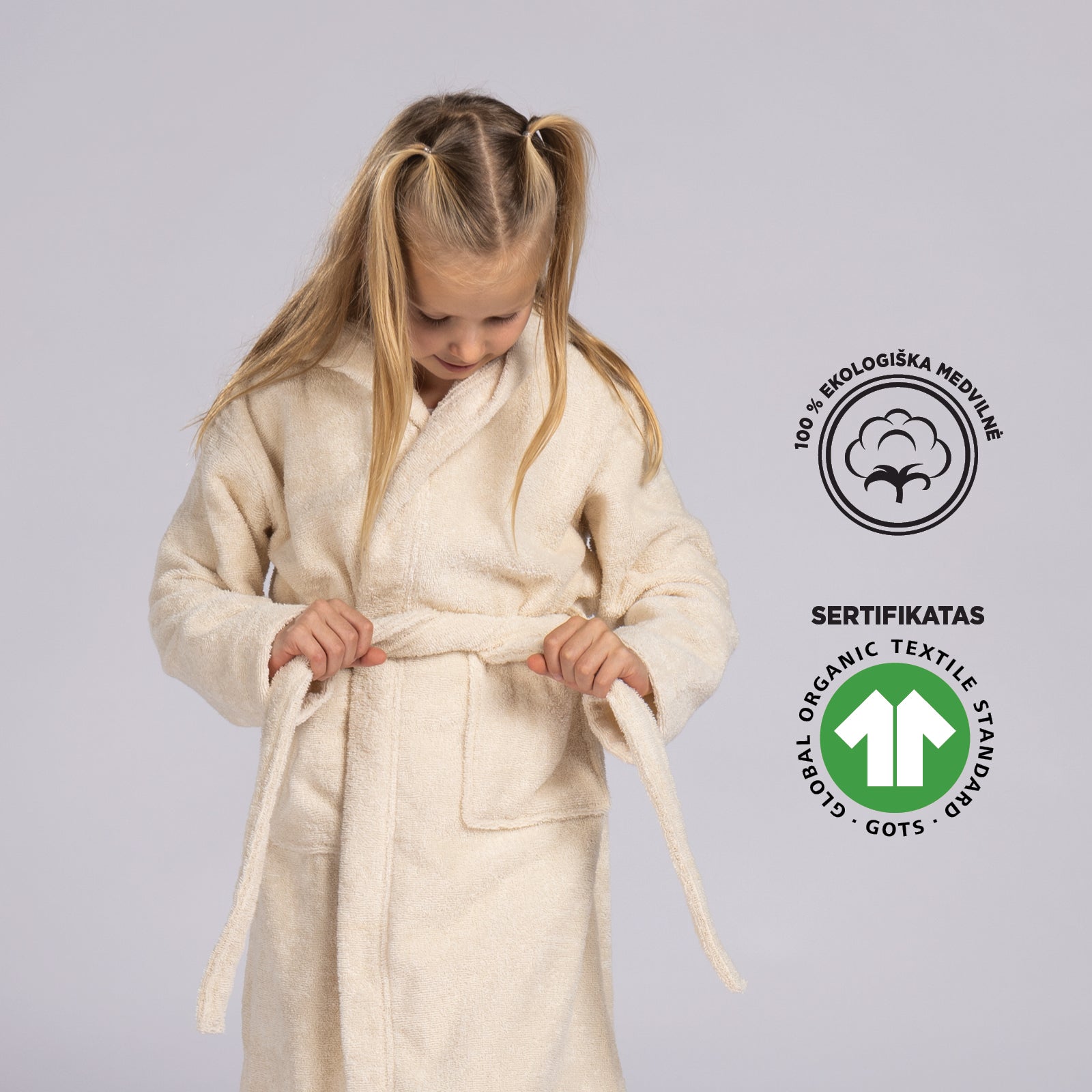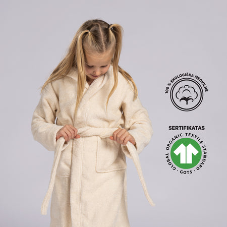 - Vaikiškas chalatas iš 100 % ekologiškos medvilnės.
