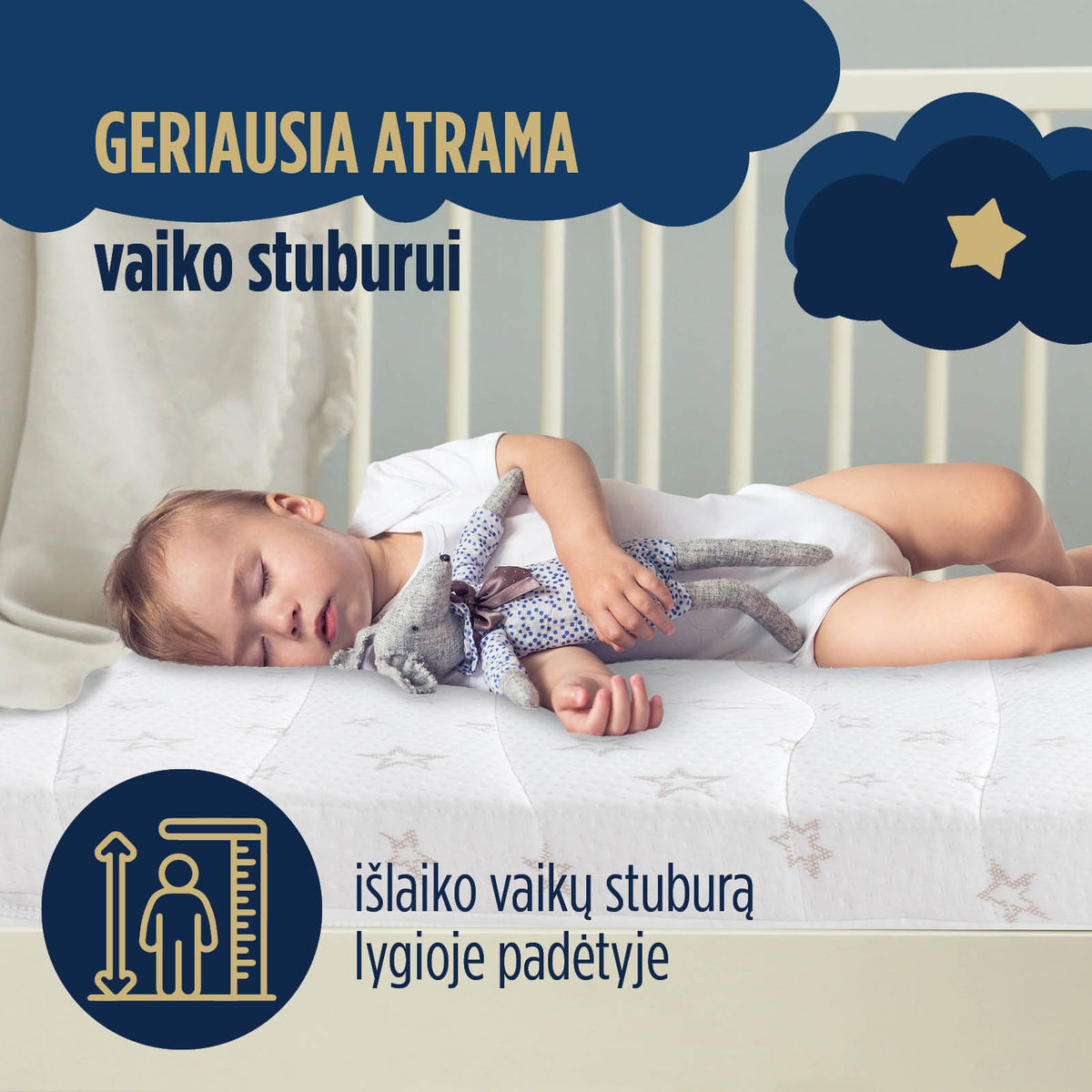 - Vaiko stuburas visą laiką yra lygus, o tai labai svarbu vaiko vystymuisi ir saldžiam miegui.