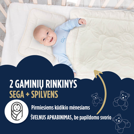 - Kūdikių pagalvės ir antklodės rinkinys ramiam mažų vaikų miegui.