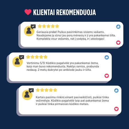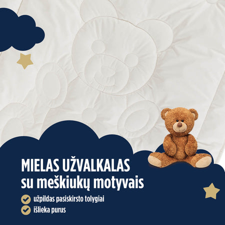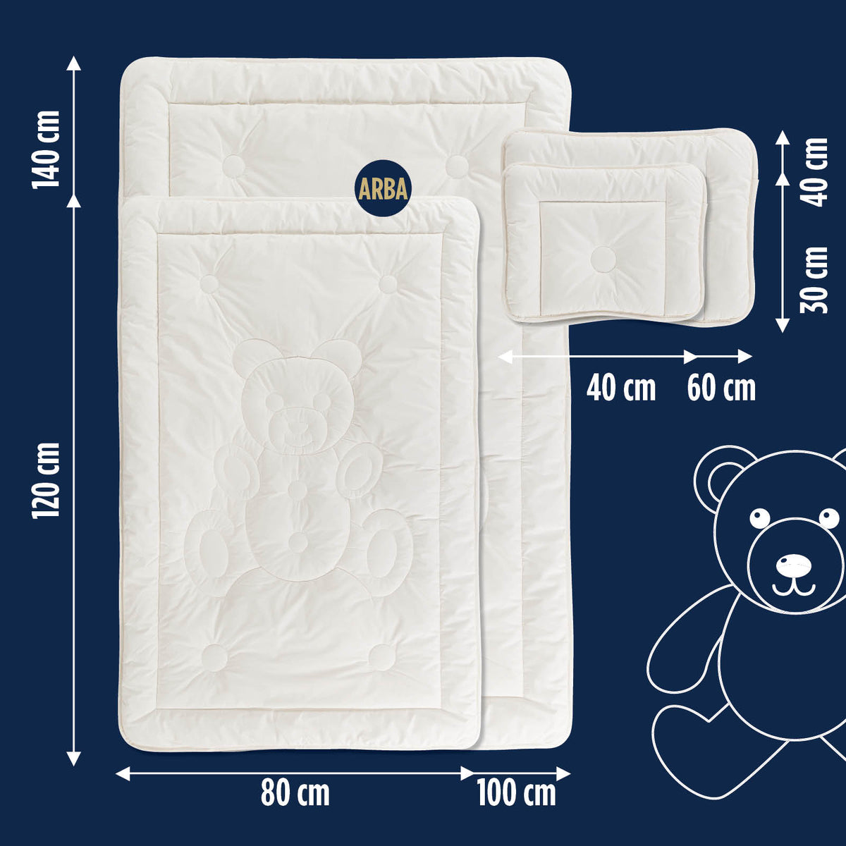Vaikams reikia žemesnės pagalvės ir erdvios antklodės, nes miegodami jie dažnai prakaituoja ir dėl to prabunda. Dėl savo aukščio ir formos pagalvė puikiai palaiko vaiko galvą, yra žema ir minkšta, todėl padeda saldžiai miegoti. Minkšta antklodė švelniai priglunda prie kūno, kad naktys būtų ramesnės.