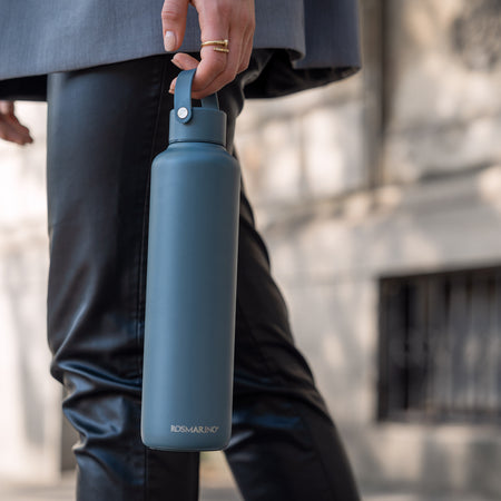 Elegantiškas nerūdijančio plieno vandens butelis padės numalšinti troškulį, kad ir kur eitumėte. 1000 ml butelis bus puikus kompanjonas biure, pasivaikštant, kelionėse ar paplūdimyje. Papildykite du kartus ir turėsite dienos skysčių suvartojimo normą. Pastelinės spalvos ir elegantiška butelio išvaizda papildys jūsų stilių. Butelis turi rankenėlę, kad būtų lengva nešiotis, ir telpa į daugumos kuprinių butelių kišenes. Naudojant daugkartinį butelį, taip pat sumažinamas poveikis aplinkai, taip sumažinant atliekų kiekį.