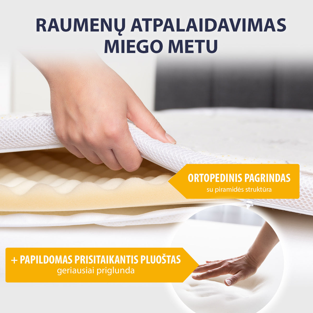 - Tai geriausias sprendimas tiems, kurie nenori pakeisti savo senojo čiužinio, o tik pagerinti miegą.