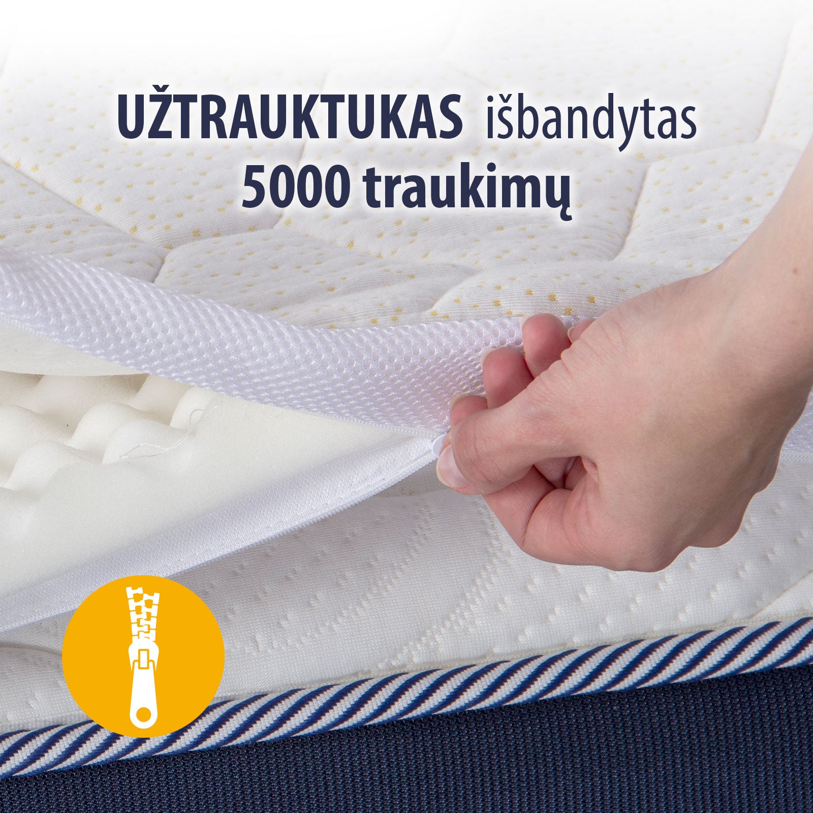 - Nuimamą antčiužinį galima skalbti 30 °C temperatūroje, todėl jis tinka visiems, kurių oda jautri ir problemiška, kenčiantiems nuo alergijų ir astmos.