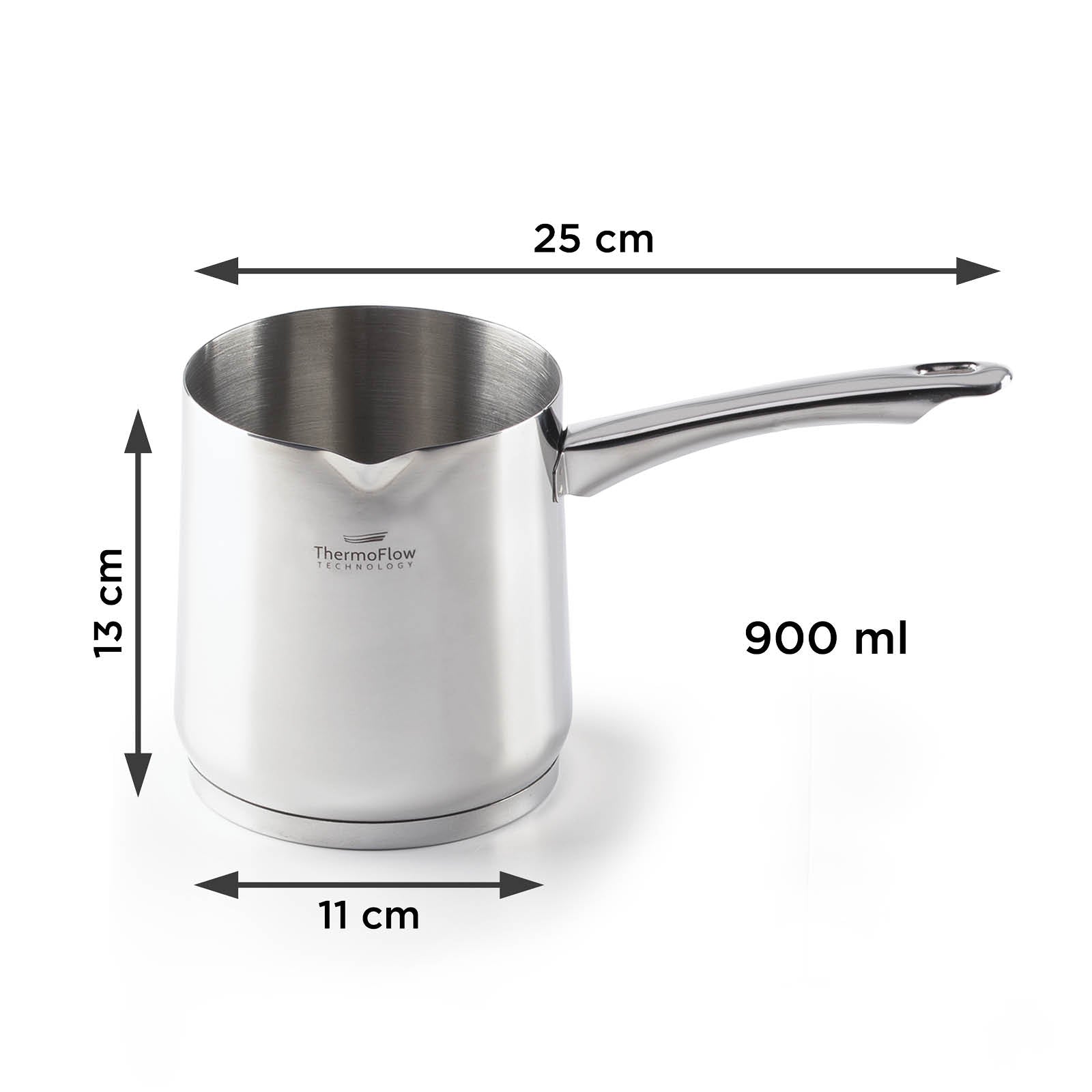 Plieninė kavavirė Pour&Cook II, kurios talpa 600 ml, pagaminta iš nesunaikinamo 18/10 plieno su 3 sluoksnių pagrindu, kad greitai ir tolygiai įkaistų bei sutrumpintų virimo laiką. ThermoFlow technologija užtikrina puikų šilumos paskirstymą visame puodo paviršiuje, todėl maistas ruošiamas tolygiai. Ją galima naudoti ant visų viryklių, įskaitant indukcines, ir ją lengva valyti, nes ją galima plauti indaplovėje.