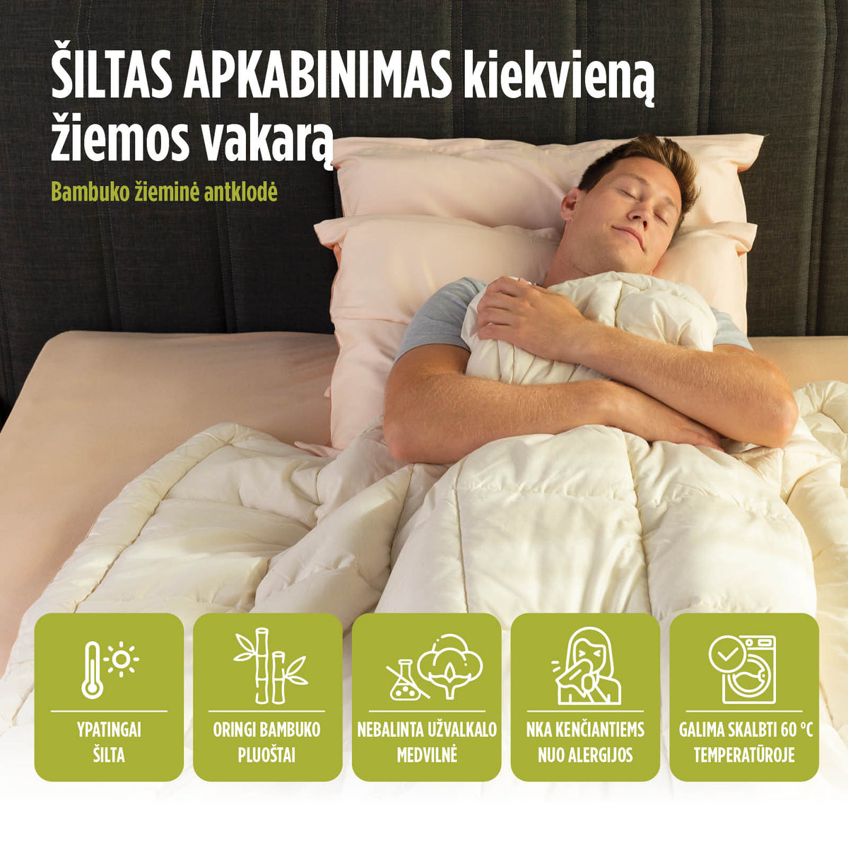 - Žieminė antklodė šiltam miegui šaltomis žiemos ir rudens naktimis.