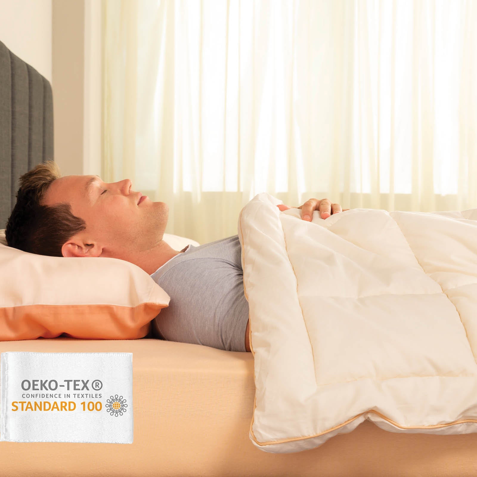 - Nebalintos medvilnės užvalkalas užtikrina, kad jūsų oda liestųsi su natūraliomis medžiagomis. Taip pat tinka žmonėms, turintiems jautriausią odą, sergantiems astma ir alergiškiems žmonėms.